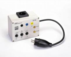 Via de båda mässingsytorna kan motstånden på 50 kOhm resp. 200 mOhm direkt kontakteras med teststiftet - För dagligtest av standardaggregat och testsystem