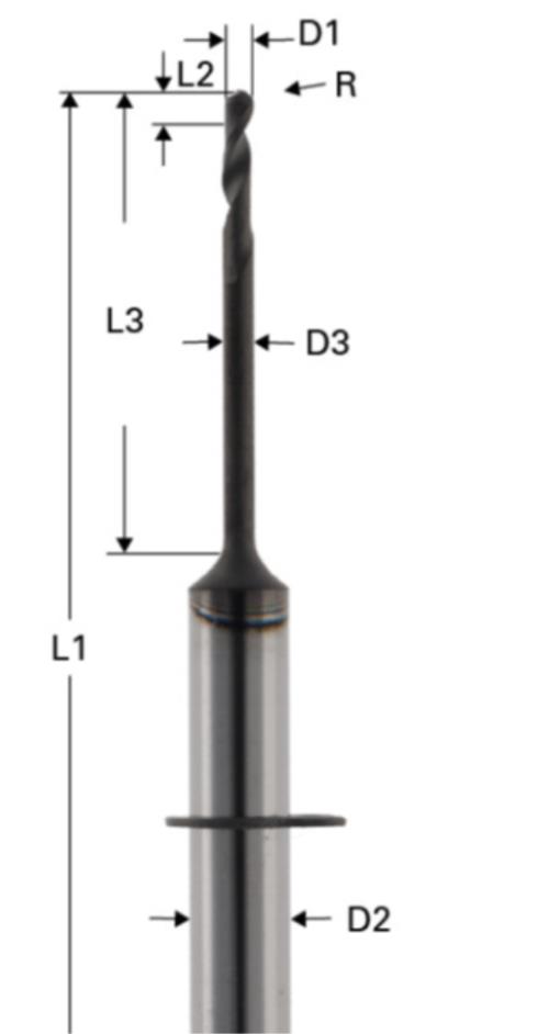 D1: 2,0 mm, D2: 3,0 mm, D3: 1,9 mm